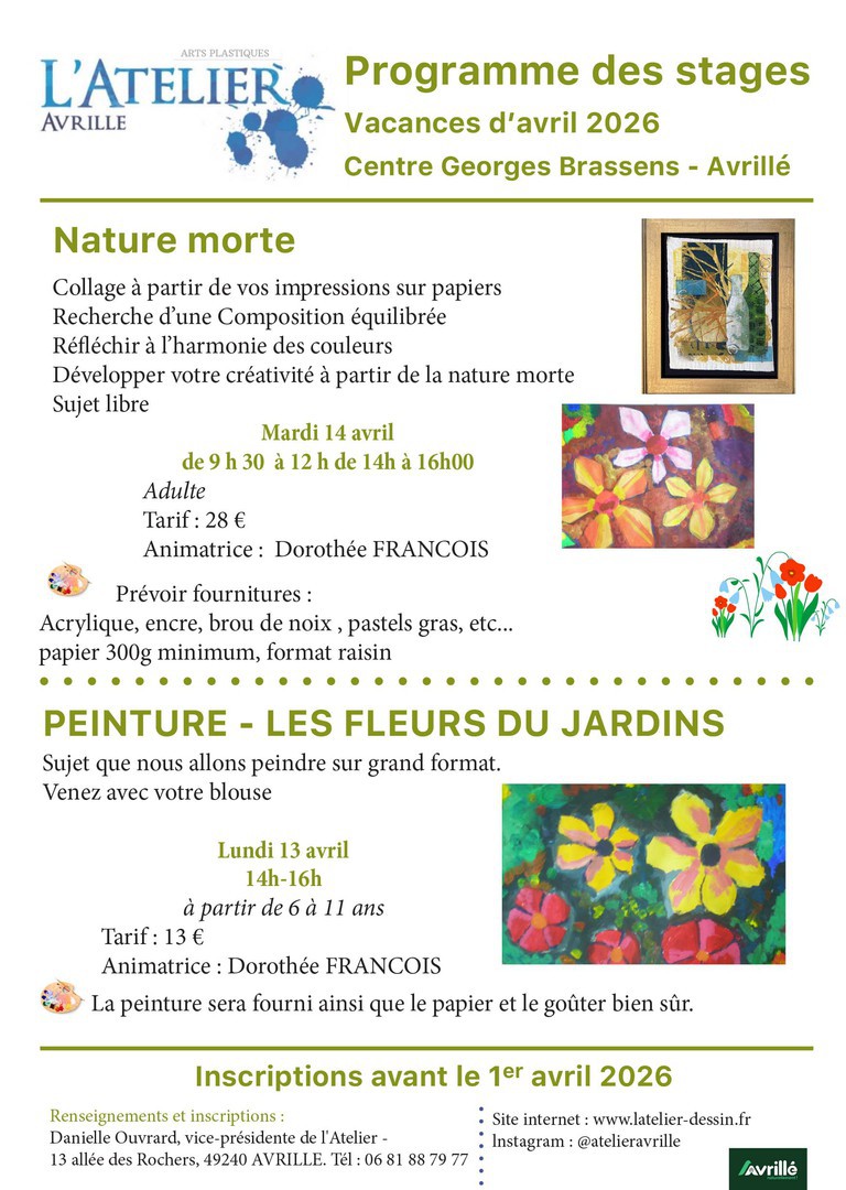 Créé en 1972 à l'initiative d'un groupe de parents d'élèves, l'Atelier s'adressait tout d'abord aux enfants pour compenser l'absence d'enseignement de dessin aux collèges et autres structures d'animation à Avrillé.
